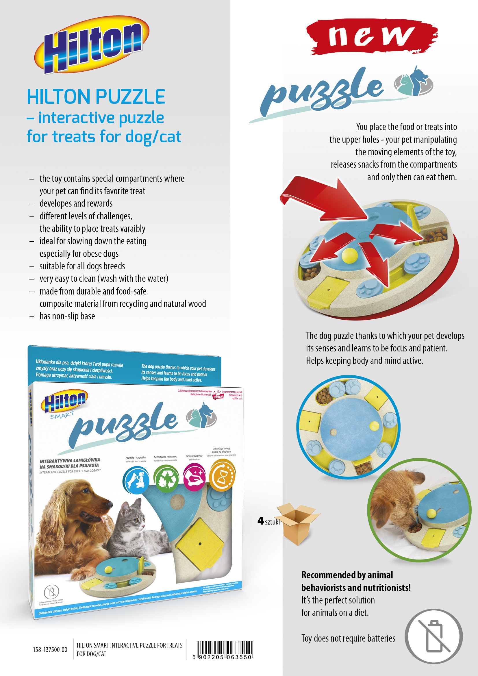 - 🧠 Õppimist soodustav disain – maiused peidetakse eri kohtadesse, koer peab need üles leidma