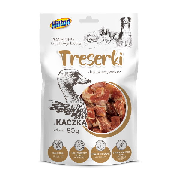 HILTON looduslikud pardi tükid koertele, 80g – maitsvad ja tervislikud treeningmaiused, 71% pardi rinnast, ei sisalda kunstlikke säilitusaineid ega lõhnaaineid. 🍗🐾